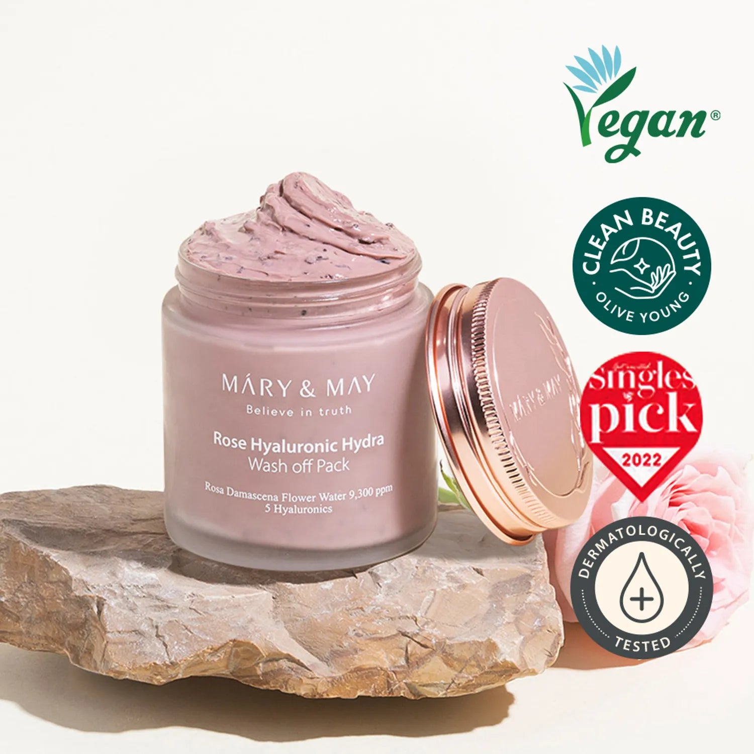 Mary&May Rose Hyaluronic Hydra Wash Off Pack (125 g) es una mascarilla tipo wash‑off que hidrata intensamente, suaviza y aporta una luminosidad fresca gracias a su combinación de extracto de rosa e hialuronato de sodio. Es ideal para pieles secas, sensibles o apagadas.